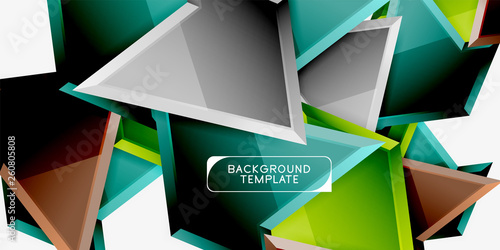 Bright colorful triangular poly 3d composition,abstract geometric background, minimal design, polygonal futuristic poster