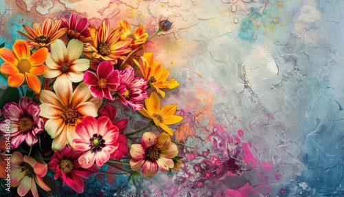 Bright floral composition on textured background