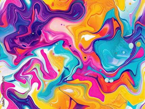 Bright fluid paint flat pattern Dynamic liquid shapes seamless background