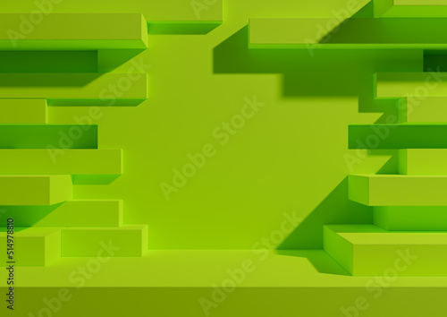 Bright, lime, neon green 3D rendering product display podium or stand with abstract brick wall portal for product photography minimal, simple, geometric background wallpaper for luxury grunge products