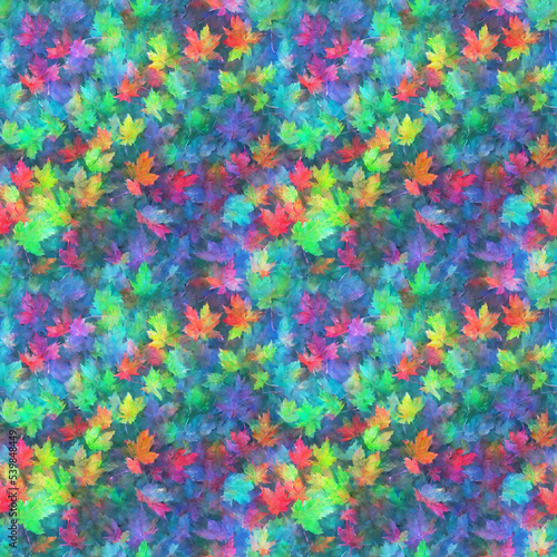 Bright painted leaves of different colors in the style of impressionism - seamless texture.