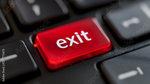 Bright Red Exit Button on a Modern Keyboard with Black Keys