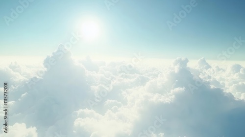 Bright sunlight illuminating fluffy clouds in a serene sky.