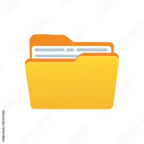 Bright yellow and orange folder icon with documents inside