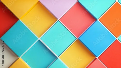 Brightly colored grids arranged in a minimalist pattern on a clean background