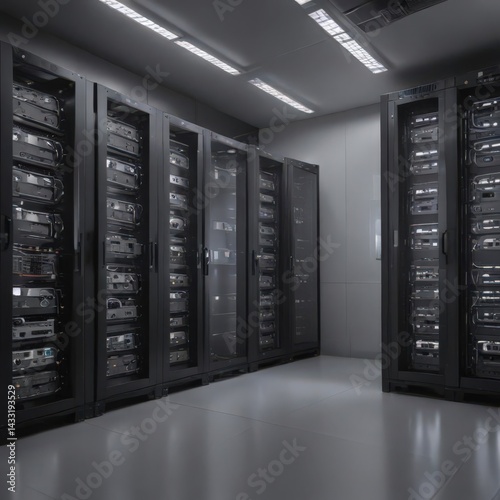 Brightly lit server room with advanced IT equipment, efficiency, high-tech, network