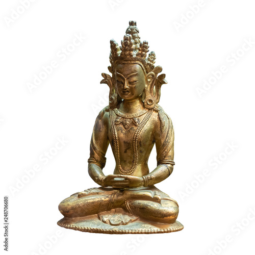 bronze Buddha statue isolated on white background