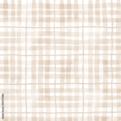 Brown Beige Plaid Tartan Gingham Check Hand Drawn Background Pattern Overlay