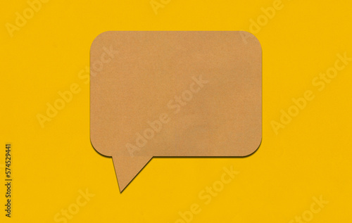 Brown paper speech bubble on yellow paper background.