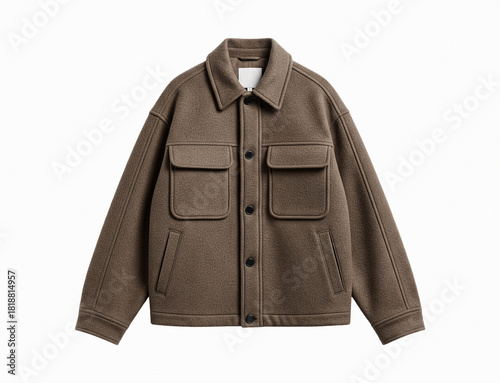 Brown Wool Jacket Mockup Front View Isolated on White Background