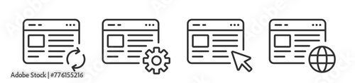 Browser icon. Website interface vector. Web site setting, search, reload, global.