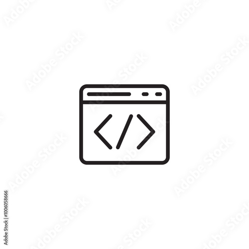 Browser with code, programming icon. Browser and code icon, outline style. Browser window with angle brackets, coding symbol.