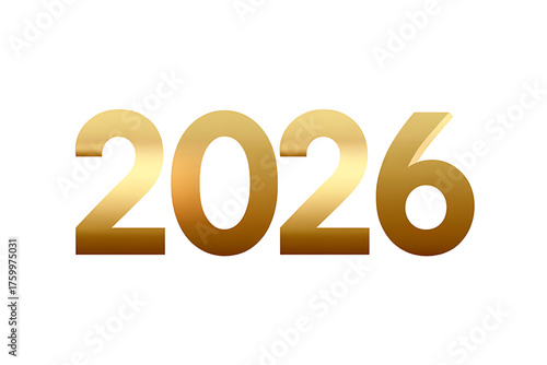 Brushed Gold Metallic 2026 New Year date, isolated on a transparent background.