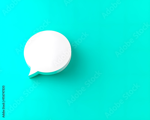 Bubble icon. Speech bubble. Blue green background. Copyspace.