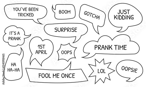 Bubbles with funny phrases for April Fools Day. Vector illustrations.