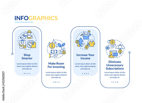 Budget planning for inflation blue rectangle infographic template. Data visualization with 4 steps. Editable timeline info chart. Workflow layout with line icons. Lato-Bold, Regular fonts used