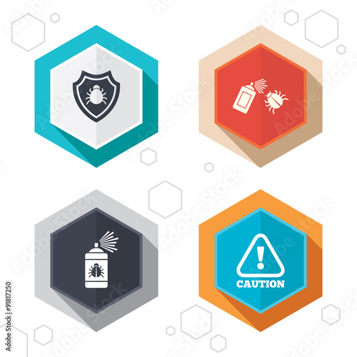 Bug disinfection signs. Caution attention icon.