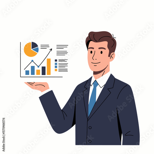 Business Analytics Presentation: Man with Data Chart