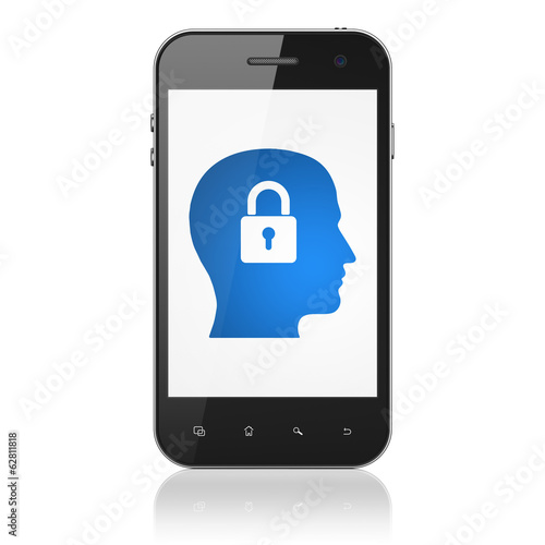 Business concept: Head With Padlock on smartphone