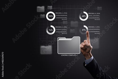 Business developer hand using board framework on virtual modern computer showing innovation Agile software development lean project management tool fast changes concept.Document Management System DMS