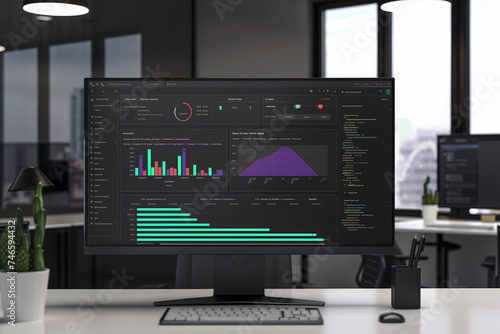 Business graph on computer screen in dark office