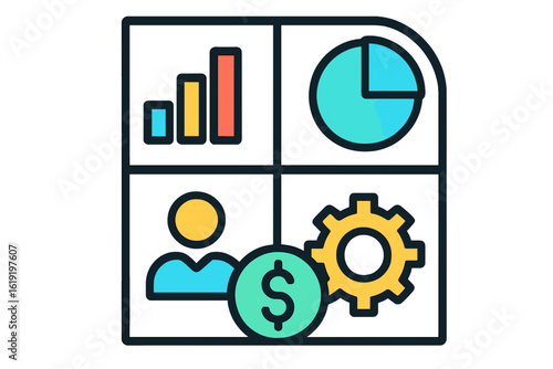 Business infographic design with charts, graphs, and icons business data grid