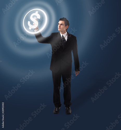 business man pressing button
