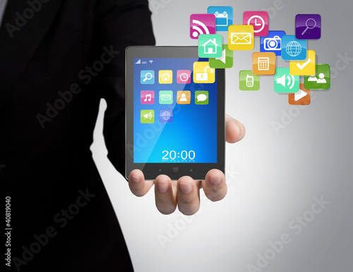 Business man with touch screen device