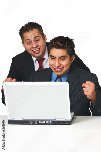 Business men looking at laptop