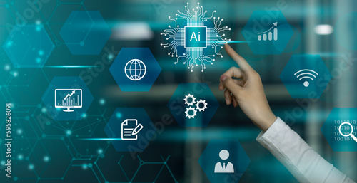 Business people using Ai technology on virtual screen. Digital transformation change management, internet of things. new technology big data
