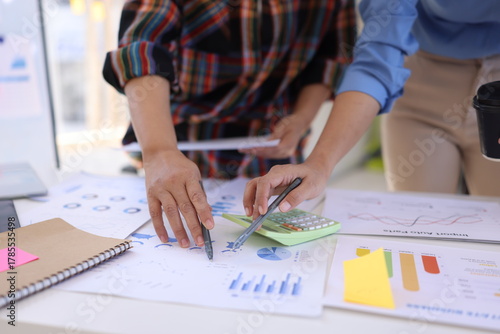 Business person hands working with business financial graph data and marketing plan at desk in office, Business people meeting explaining and business concept.