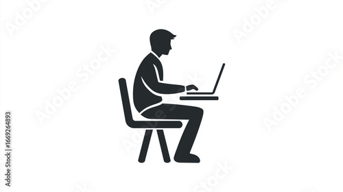 Business Person Working on Laptop Icon for Office, Remote Work, Professional Design