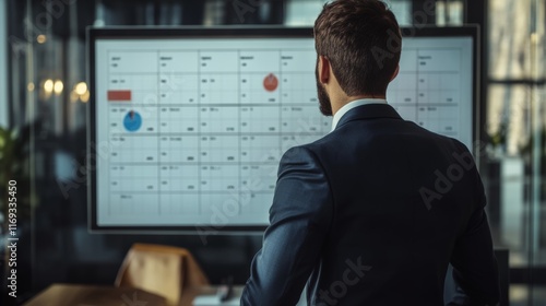 Business Planning Calendar Agenda work schedule and Project management concept. Businessman manages time for effective work with Calendar on virtual screen. Time management. Reminder appointment