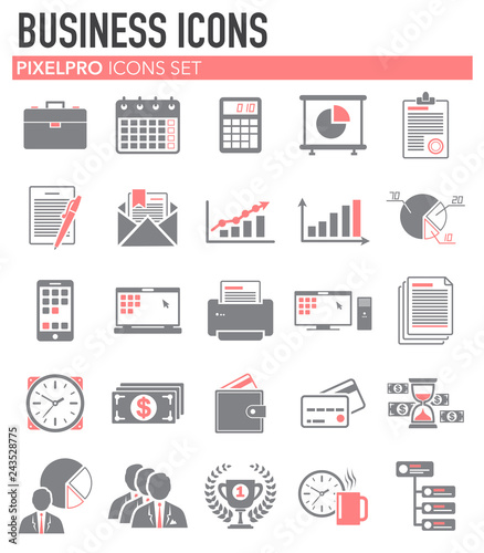 Business red grey icons set on white background for graphic and web design, Modern simple vector sign. Internet concept. Trendy symbol for website design web button or mobile