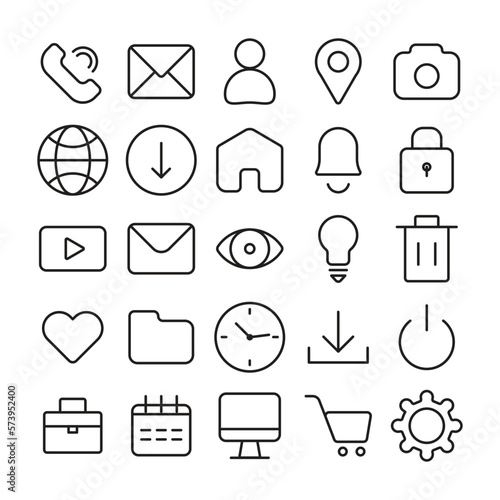 Business Set Icon Pack with phone call, message, location, home button, clock, setting etc. vector outline