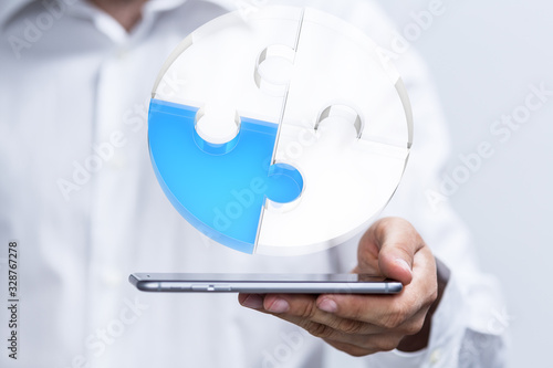 jigsaw, puzzle, strategy, idea, success, business, concept, hand, connecting, solution, team, teamwork, advertising, company, corporate, cyberspace, problem, abstract, banner, blurred, businessman, people, piece, app, background