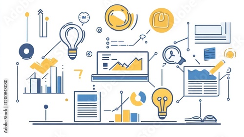 Business strategy concept with elements of analysis, planning and execution using a flat line vector illustration