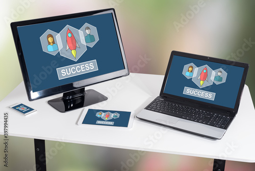 Business success concept on different devices