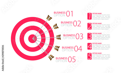 Business target with 5 arrows or option, infographic template to goal for success something with can be used for presentation, banner, graphic, business flow and diagram.Abstract template.
