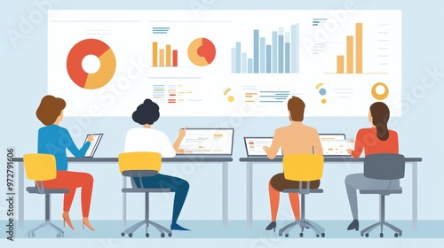 Business Team Analyzing Data Graphs Charts Meeting Office Workspace