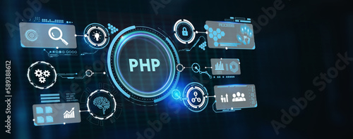 Business, Technology, Internet and network concept. PHP abbreviation. Modern technology concept. 3d illustration