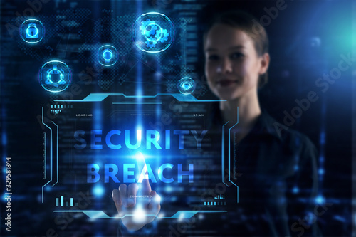 Business, Technology, Internet and network concept. Young businessman working on a virtual screen of the future and sees the inscription: