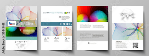 Business templates for brochure, flyer, booklet, report. Cover template, flat vector layout in A4 size. Colorful design, overlapping geometric shapes and waves forming abstract beautiful background.