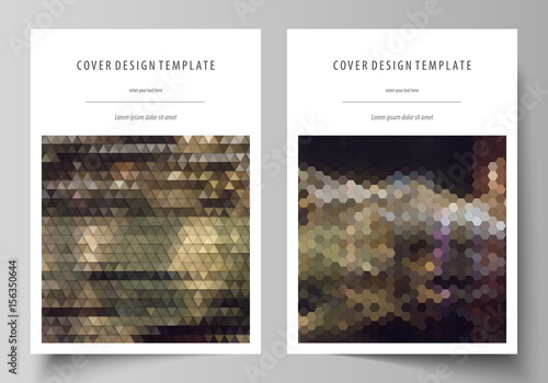 Business templates for brochure, magazine, flyer, annual report. Cover design template, vector layout in A4 size. Abstract backgrounds. Geometrical patterns. Triangular and hexagonal style.