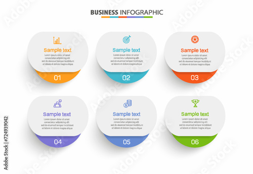 Business vector infographic design template with icons and 6 options or steps. Can be used for process diagram, presentations, workflow layout, banner, flow chart, info graph