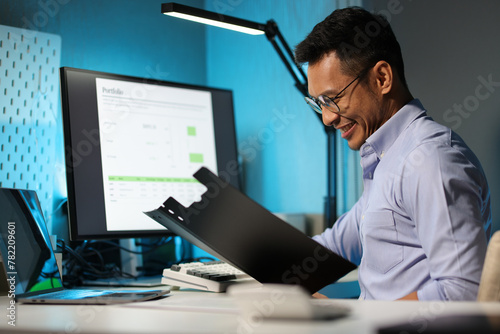 Businessman analyzing documents and business financial data.