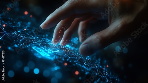Businessman hand touching of digital data network transformation for next generation technology on cyberspace Internet network and digital software development Algorithm Metaverse and : Generative AI