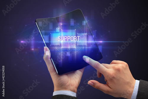 Businessman holding a foldable smartphone