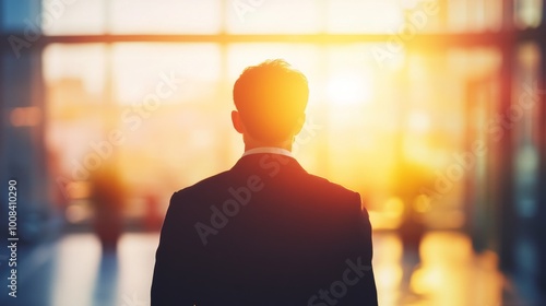Businessman in Suit Against Sunset Background