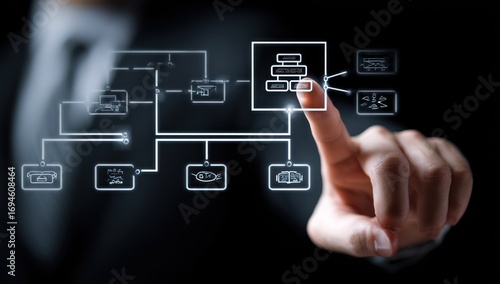Businessman interacting with a digital flowchart